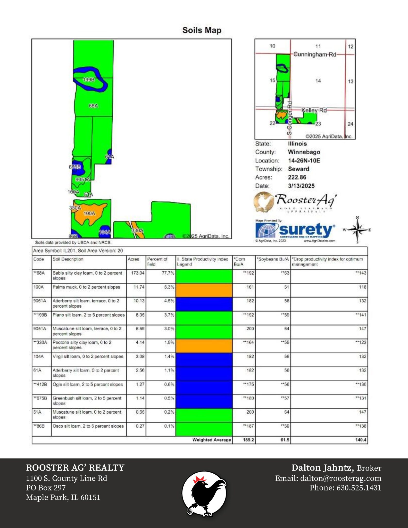 Property consists of high quality, income producing farmland with a Soil PI of 140.5.